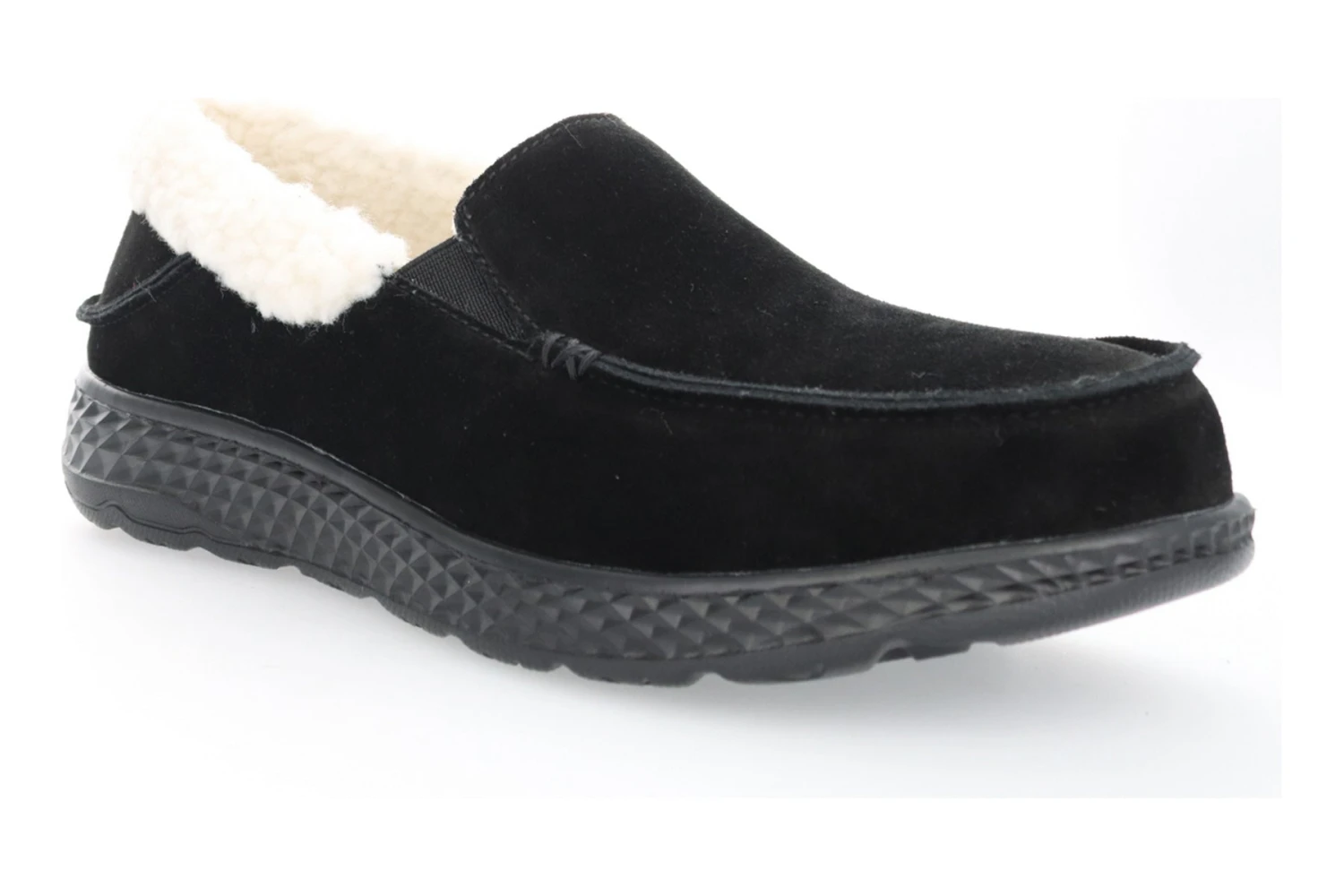 Propet Britt is a cozy, warm weather women’s slipper. These comfortable shoes have suede uppers, faux fur lining, removable footbed and EVA and rubber outsole. A moc toe construction, deep tread pattern and twin gores come together to create the only house slipper you’ll ever need.