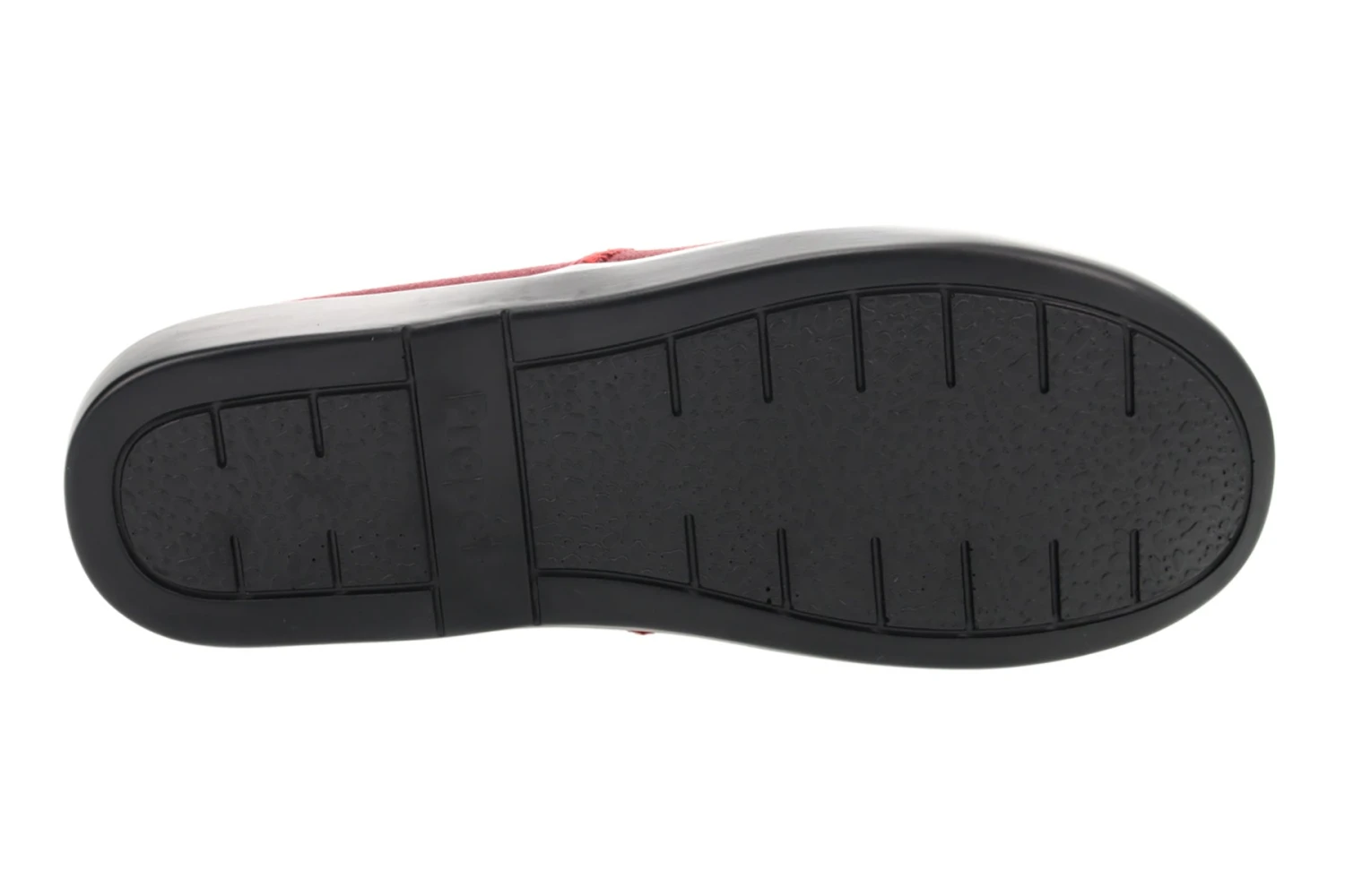 Propet Colbie is a warm and roomy slipper. Features include a suede upper with faux fur lining, slip-on construction, removable footbed and PU outsole. A high density PU foam ensures a cooler footbed, while the warm faux fur trim keeps feet warm during cold weather days.