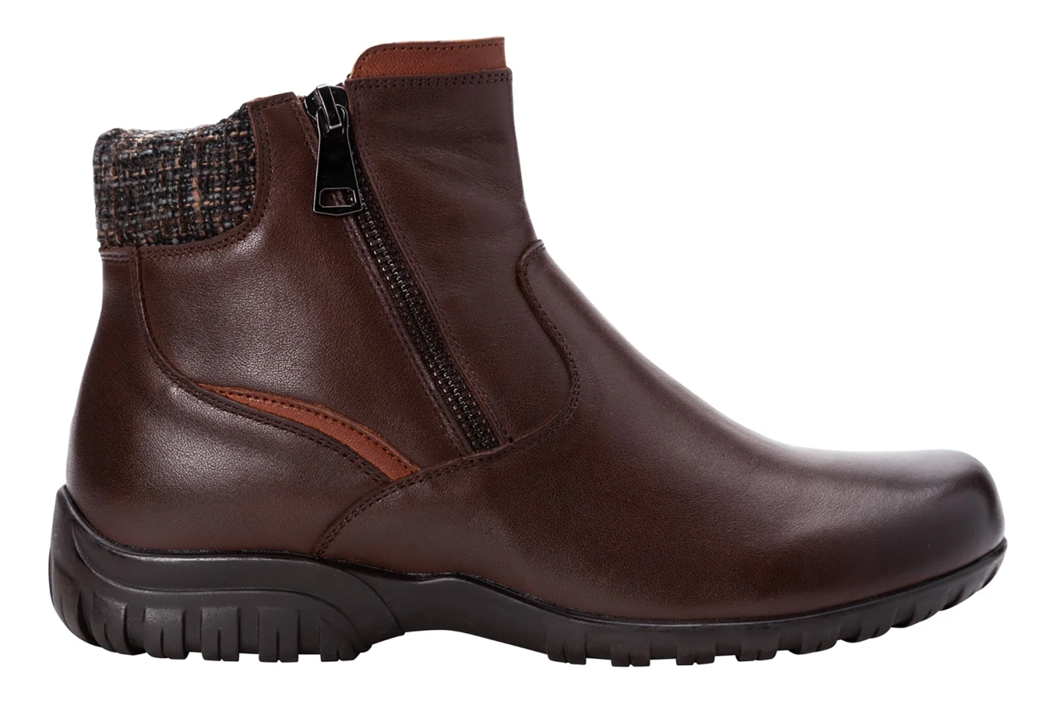 Propet Darley is a stylish and comfortable women’s bootie. These chic cold weather boots have leather uppers, twin zippers and a flexible rubber outsole. A Scotchgard treatment is water repellent and resists stains, while a removable cushioned footbed provides added comfort.