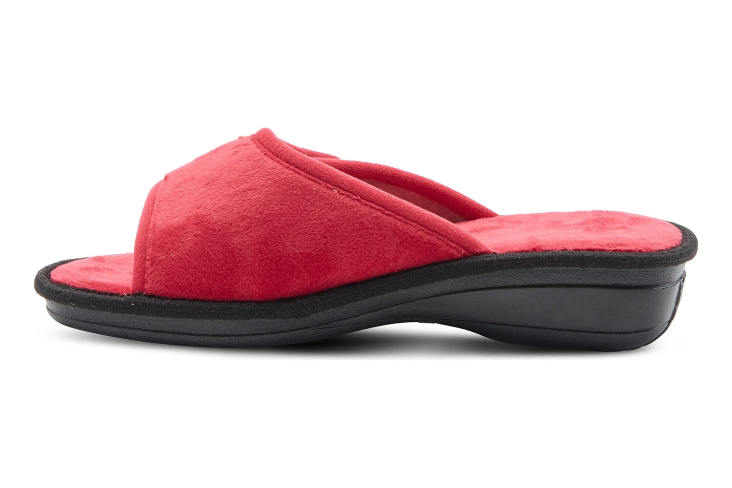 Flexus Style: Dreamsweet -Italian-made velvet-like open-toe indoor/outdoor slipper with adjustable strap for perfect fit and all-day comfort.