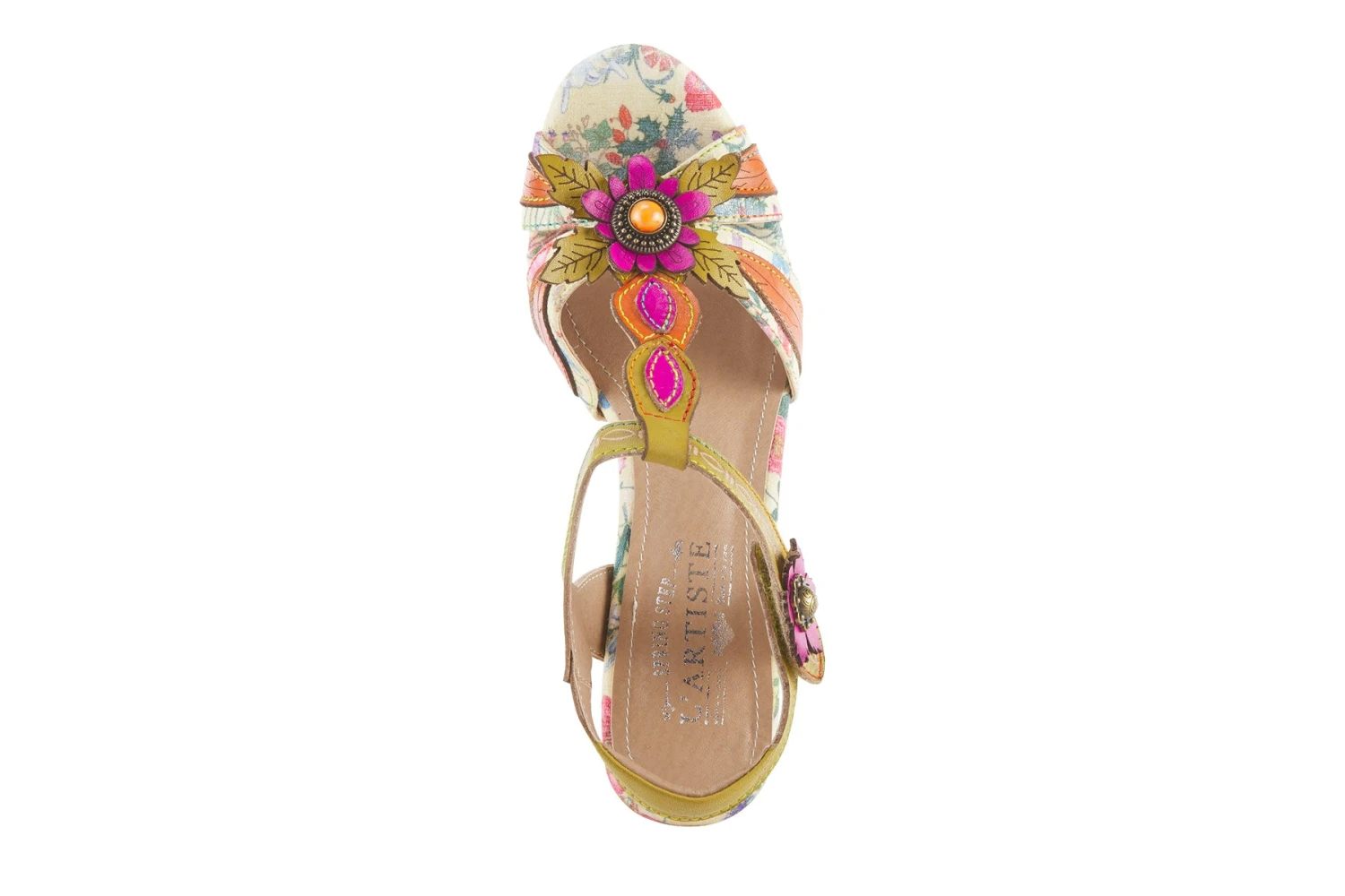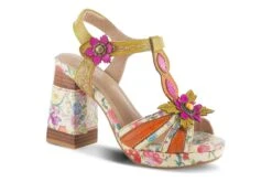 Get ready to have the time of your life with this Fabuloso shoe. These vintage-inspired shoes will take you back in time to the 70’s. These asymmetrical 3D flowers with centered ornate buttons are perfectly placed and the floral hand-painted pattern follows the shoe and the heel.