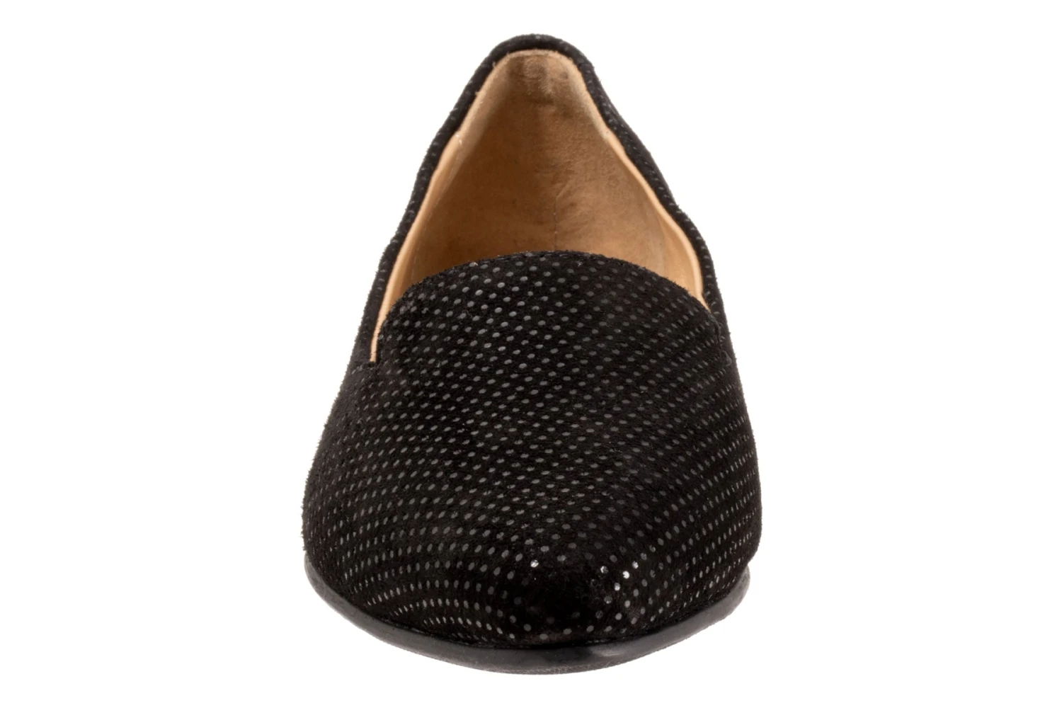 Trotters Harlowe is a sleek and classy slip-on ballet flat. Your feet will enjoy the leather and microsuede uppers, padded footbed and soft synthetic linings. A lightweight rubberized outsole provides flexibility, while a man-made upper lining offers comfort.