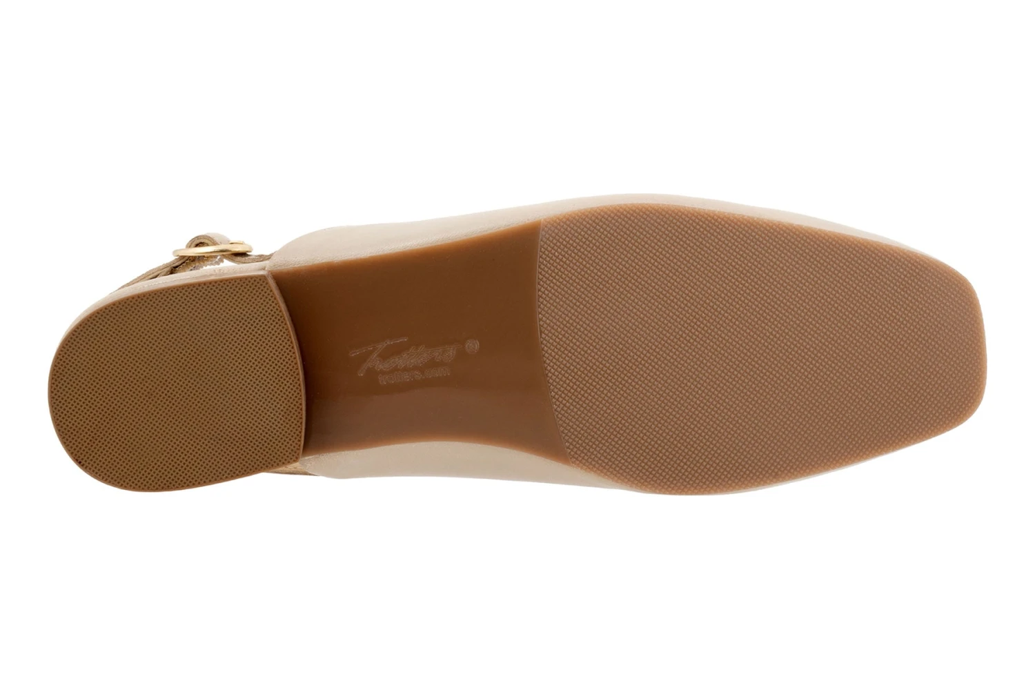 The Holly square-toe flat dresses up with an adjustable strap buckle for an easy fit. A cushioned footbed and flexible rubber sole with low stacked heel finish off this beautiful flat.