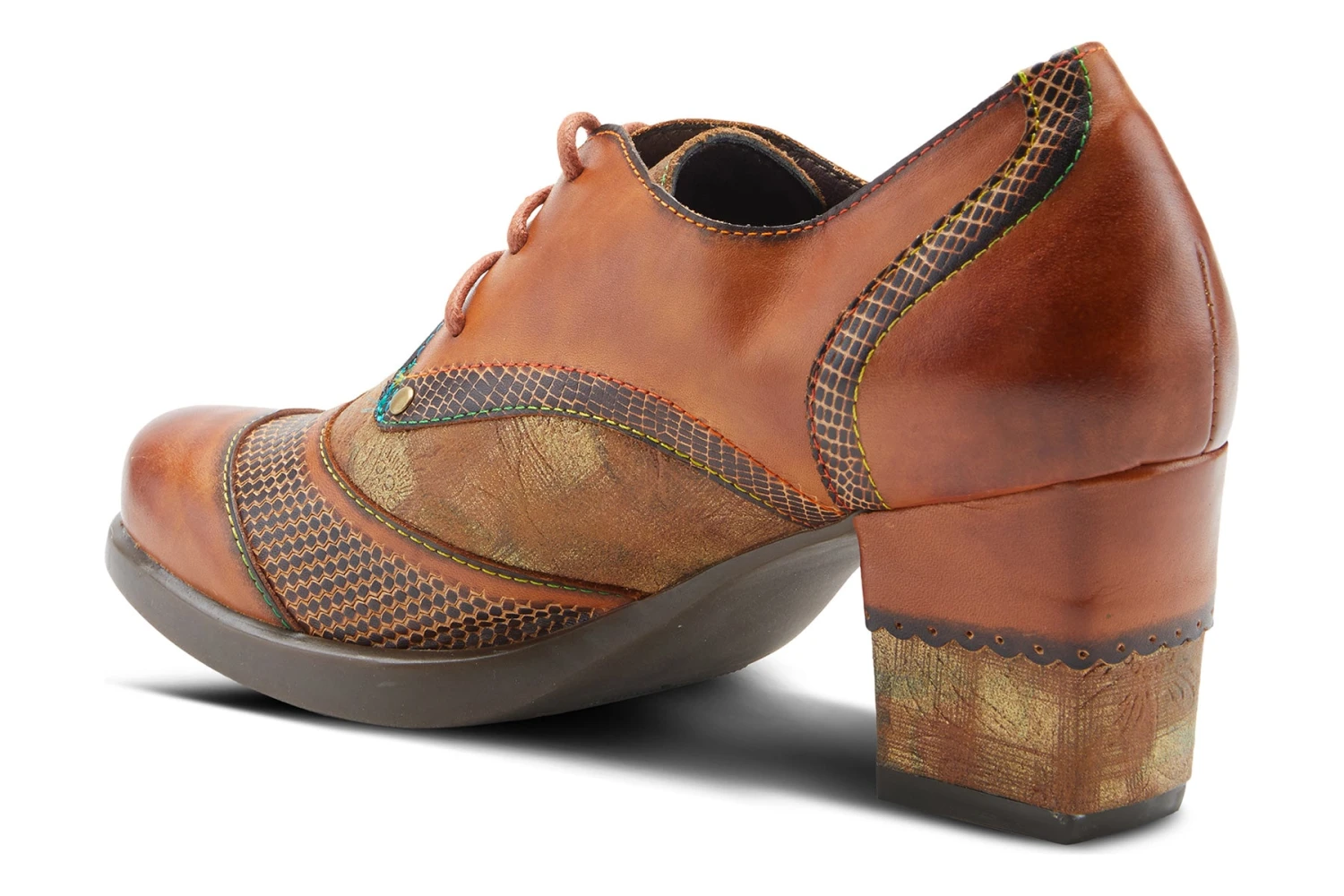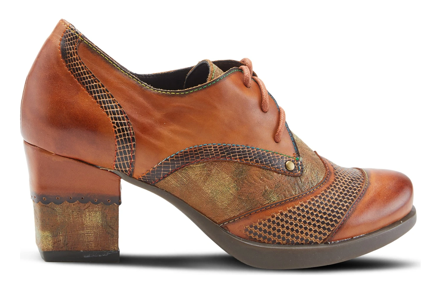 L`Artiste Style: Ilan -hand-painted, embossed and smooth leather derby oxford styled with a wrapped heel.