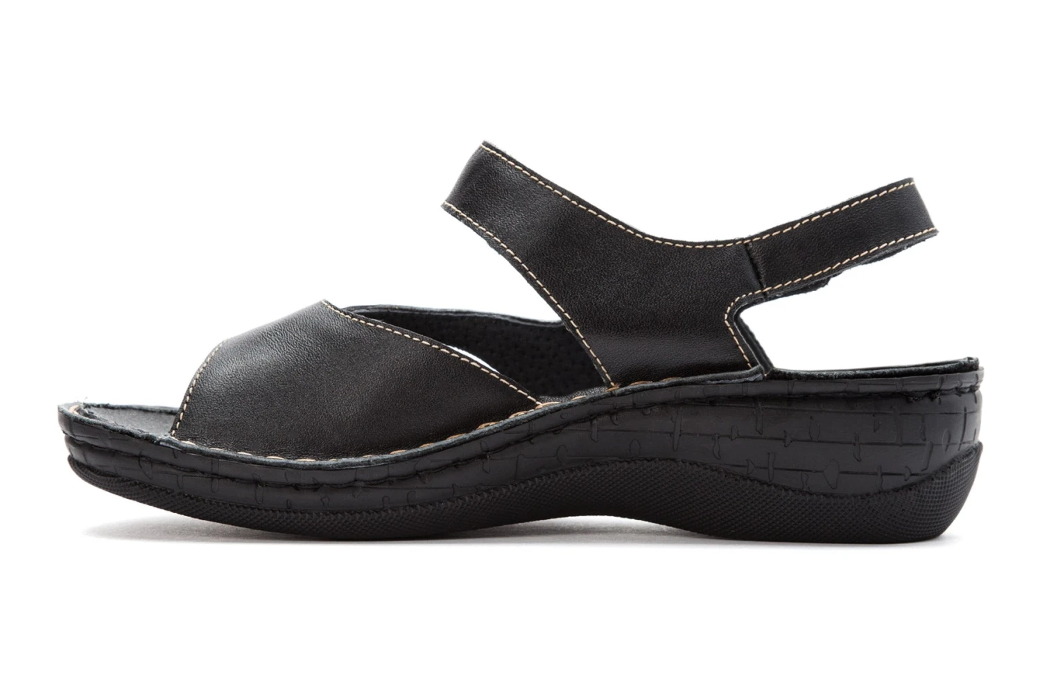 Get the comfort and adjustability you love in the women’s Propet Jocelyn sandal. Two adjustable hook and loop closures at the forefoot and instep are paired with a buckled slingback strap for an optimal fit. The removable, EVA footbed accommodates a customized orthotic for a personalized fit. The durable outsole provides traction and stability.