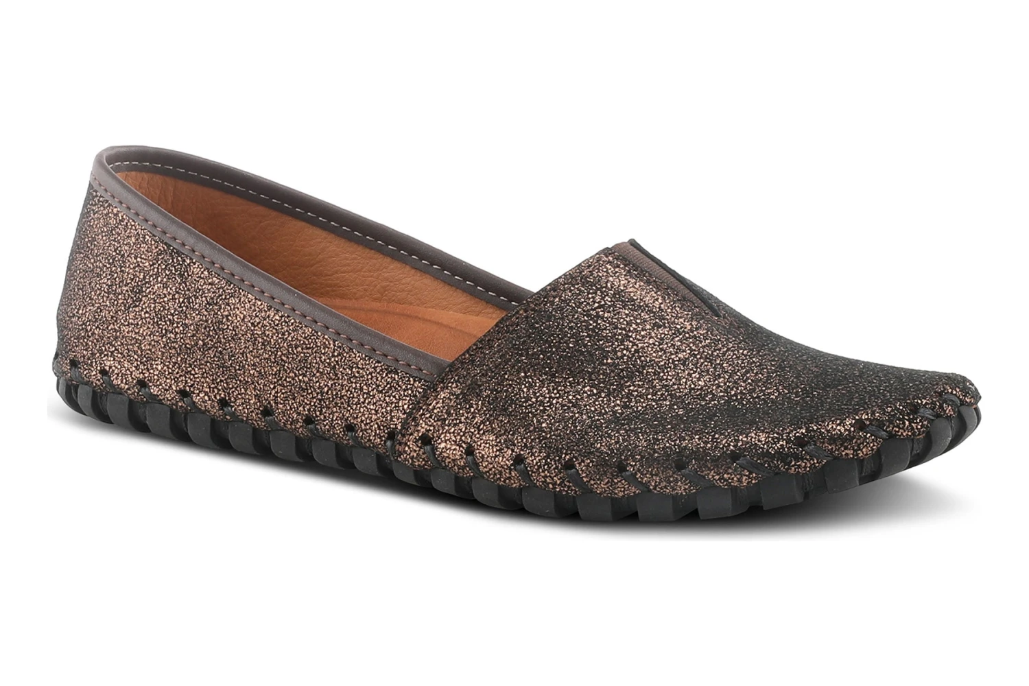 Spring Step Style: KATHALETA-MET -The premium metallic leather adds a rich look for day or night wear. A versatile and comfortable leather Slip-on flat featuring whipstitching detail and a superior removable insole with built in arch support.