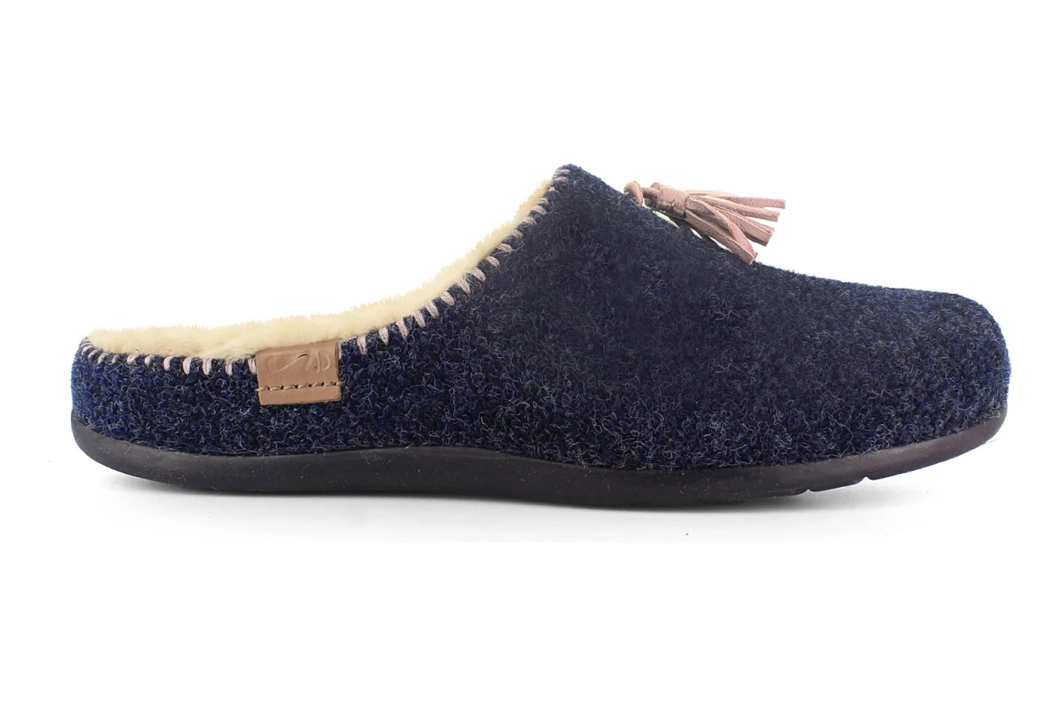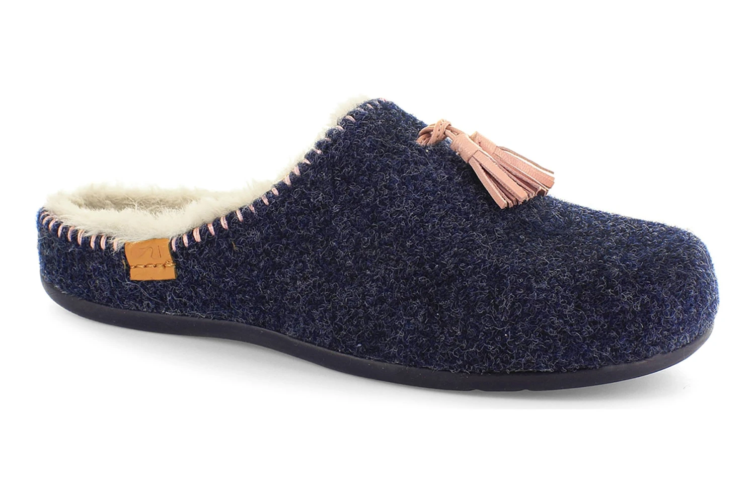 Strive Lille is a warm and cozy women’s slipper. These comfortable house shoes have textile uppers, faux fur lining, lightweight EVA midsole and rubber outsole. An open back silhouette, natural leather sock footbed and decorative tassel embellishment outlines these reliable slippers.