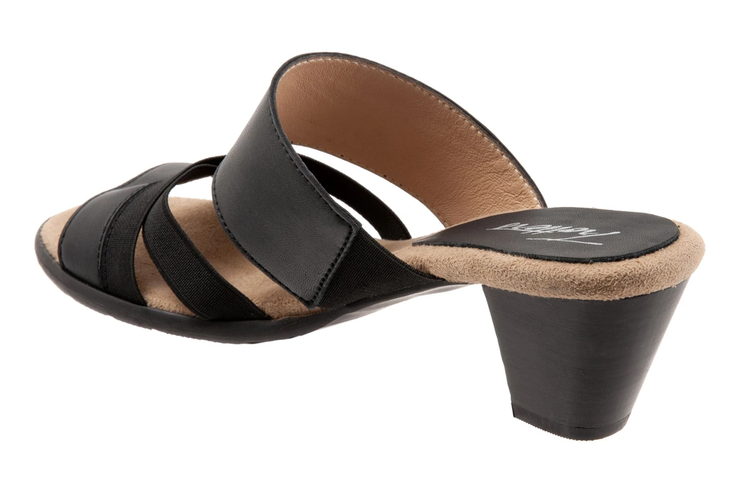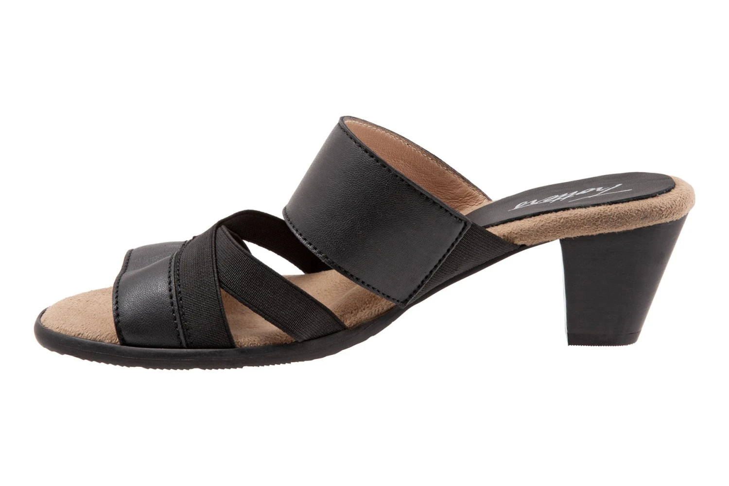 Trotters Maxine is a sleek dress sandal built for comfort. Crossing leather stretch straps and 2 1/4″ heel makes these dress sandals ideal for nights out. A cushioned footbed with soft lining and slip-resistant rubber sole completes this chic silhouette.