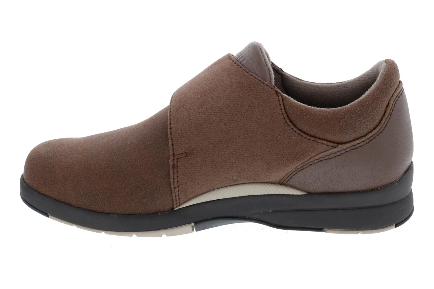 Drew women’s single strap Velcro® Moonwalk combines a contemporary look with exceptional support and comfort. This sleek, simple shoe uses stretch upper material and a large opening for easy-to-wear style. On the inside, Drilex® lining wicks away moisture keeping feet feeling fresh and dry. Underfoot, a removable footbed with a built-in metatarsal pad and flexible rubber outsole add to the shoe’s comfort features. You’ll never own a more accommodating shoe than the Moonwalk by Drew®. HCPCS Code A5500Â