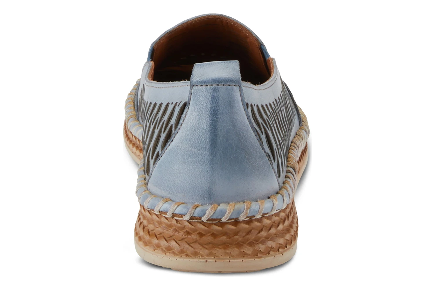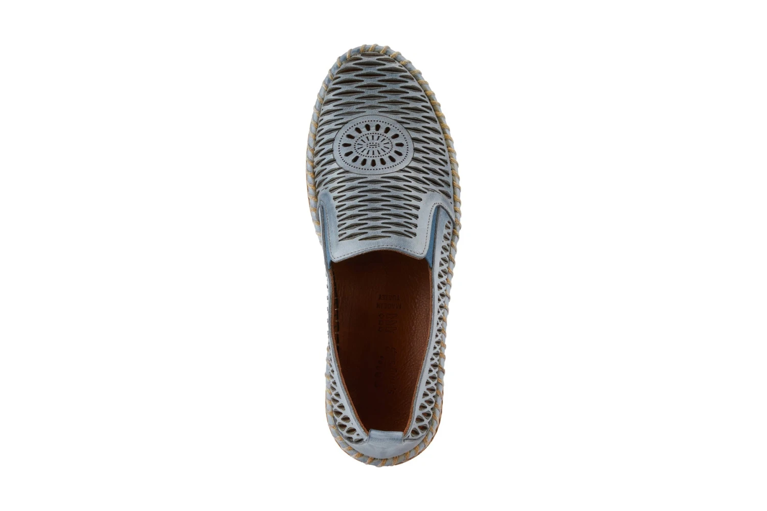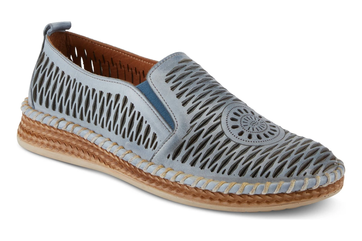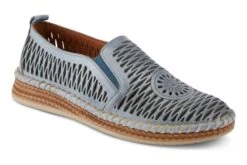 A casual shoe with an accordion upper and beautiful laser cut medallion. Stitched construction and a double-sided gore along with a removable and super padded footbed. On a unique braided outsole.
