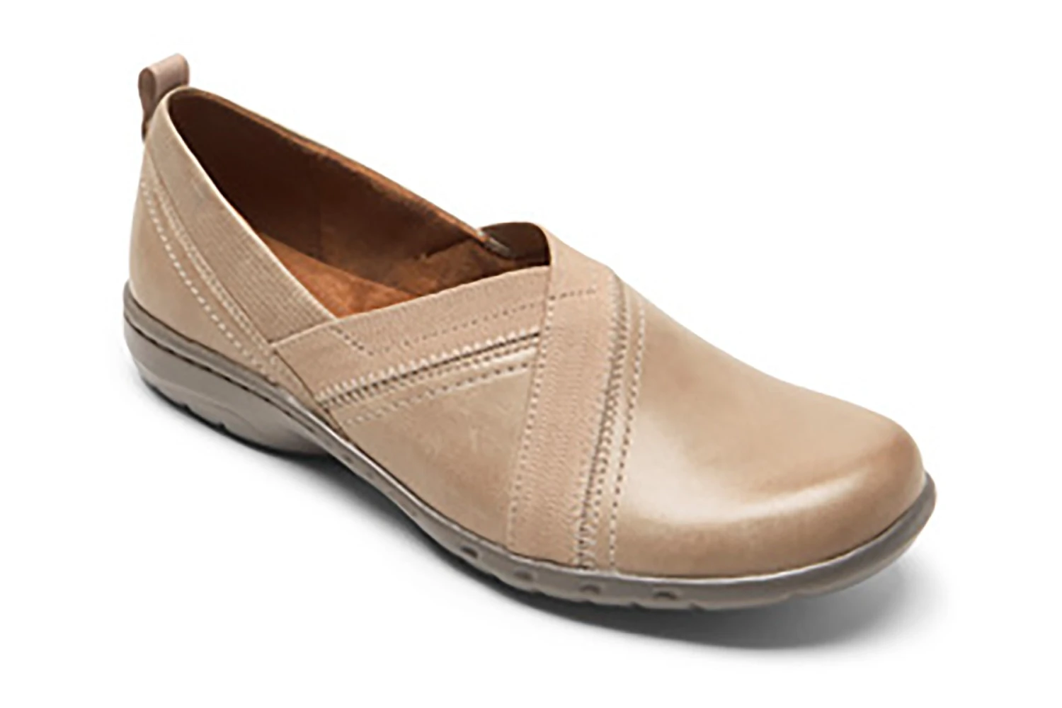 Cobb Hill Penfield Envelope is a chic slip-on shoe. Features include smooth leather uppers, lightweight EVA footbed, cushioned insole and a sturdy EVA outsole. Leather and textile linings, decorative sidewall stitching and slip-on construction with back heel tab completes these popular shoes.