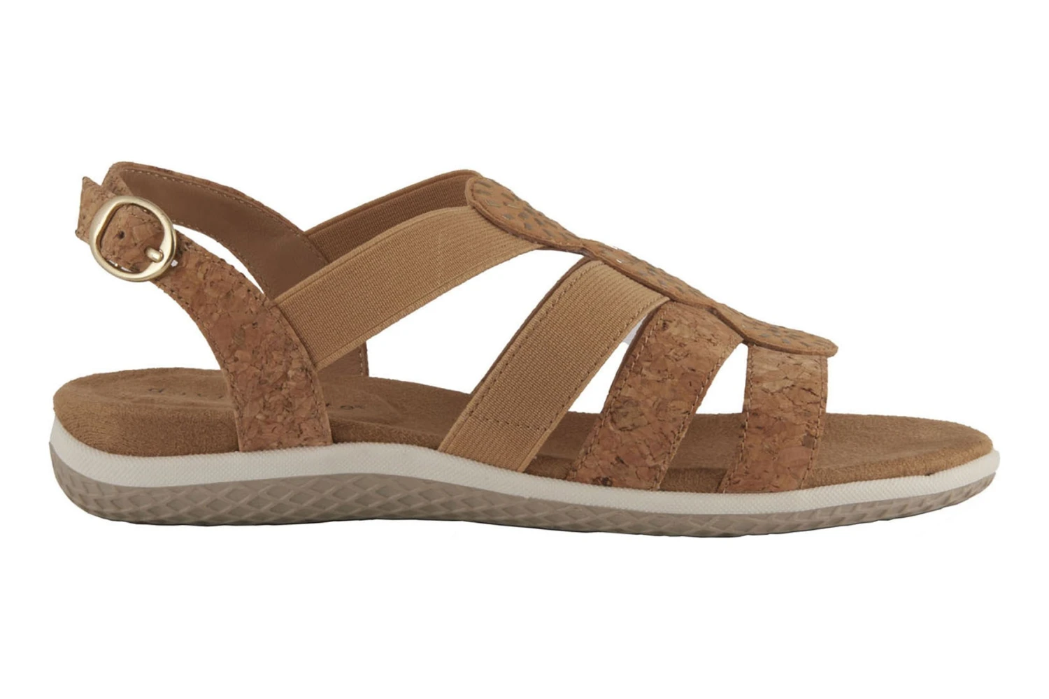 David Tate Quilt is an upscale strappy sandal designed for comfort. These slingback sandals have leather upper straps, padded insoles and rubber outsole. Elasticized bands help to secure feet in place, while an open round toe provides comfort and breathability.