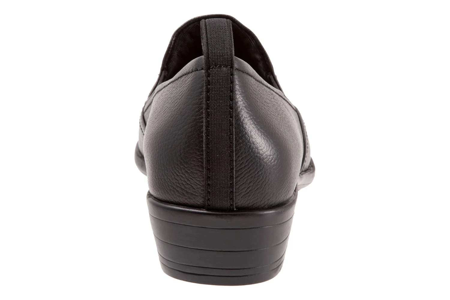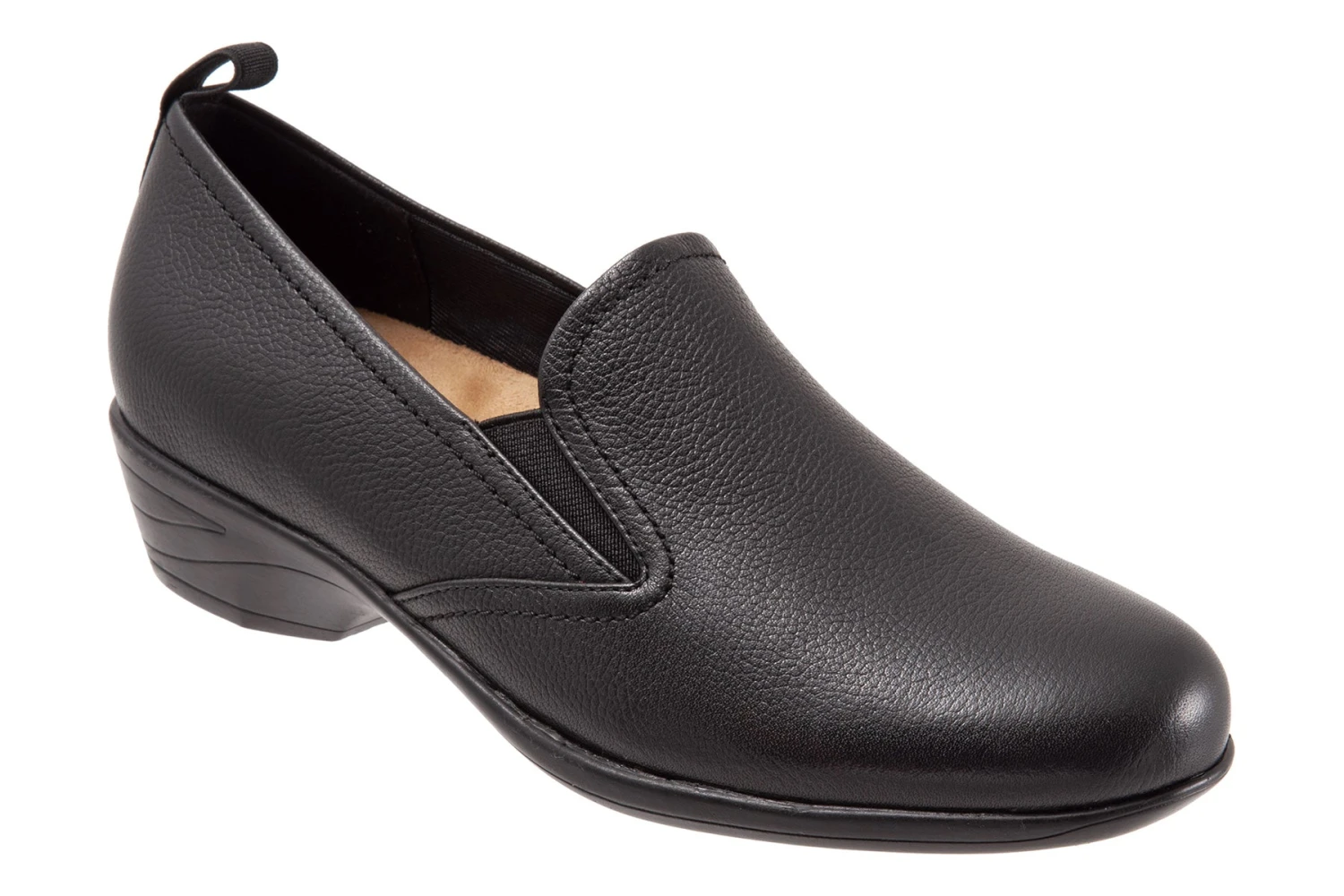 Reggie is a high-throat slip on with dual elastic goring for a clean and comfortable fit. A wonderful stable walking heel is ready for whatever the day has in store.