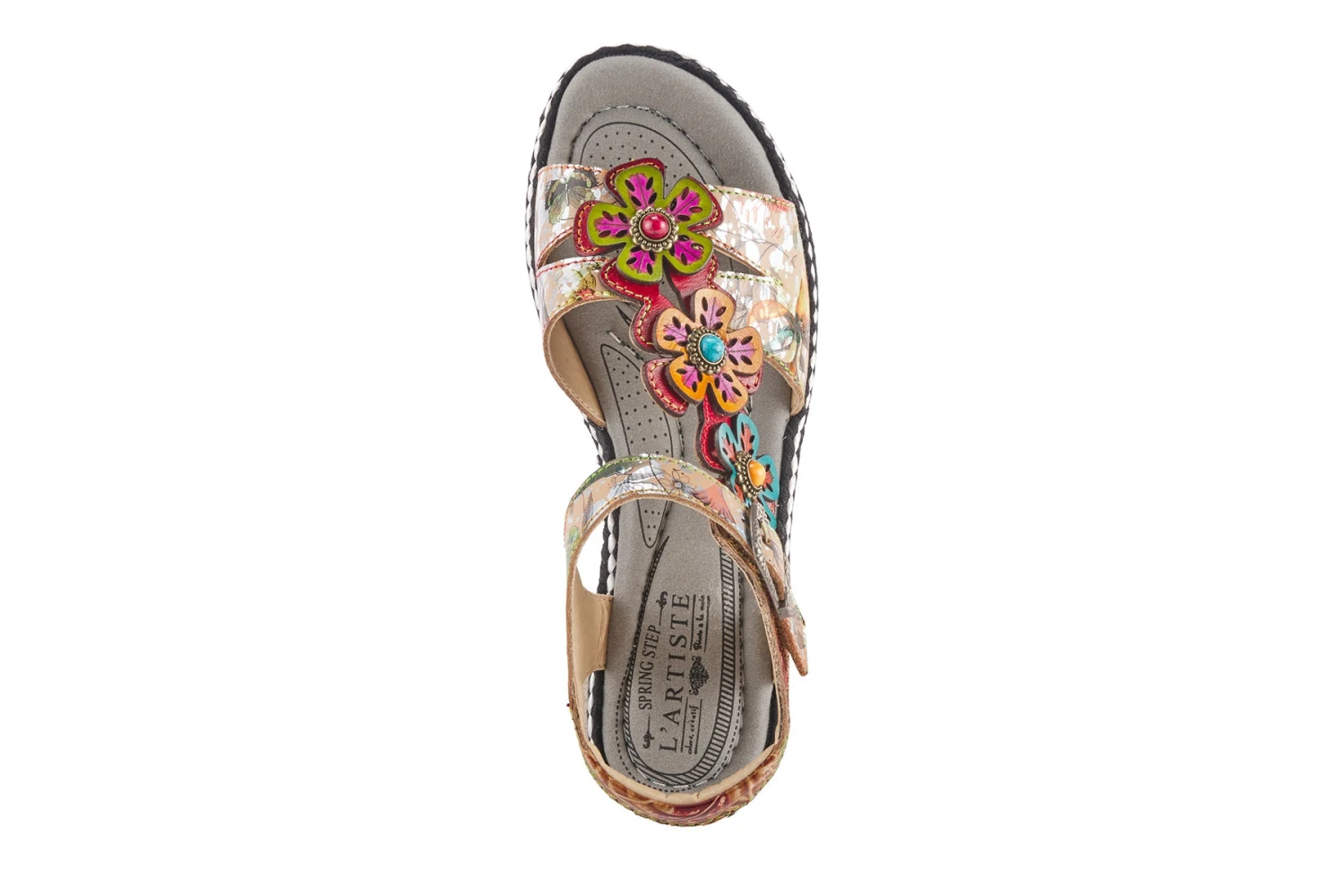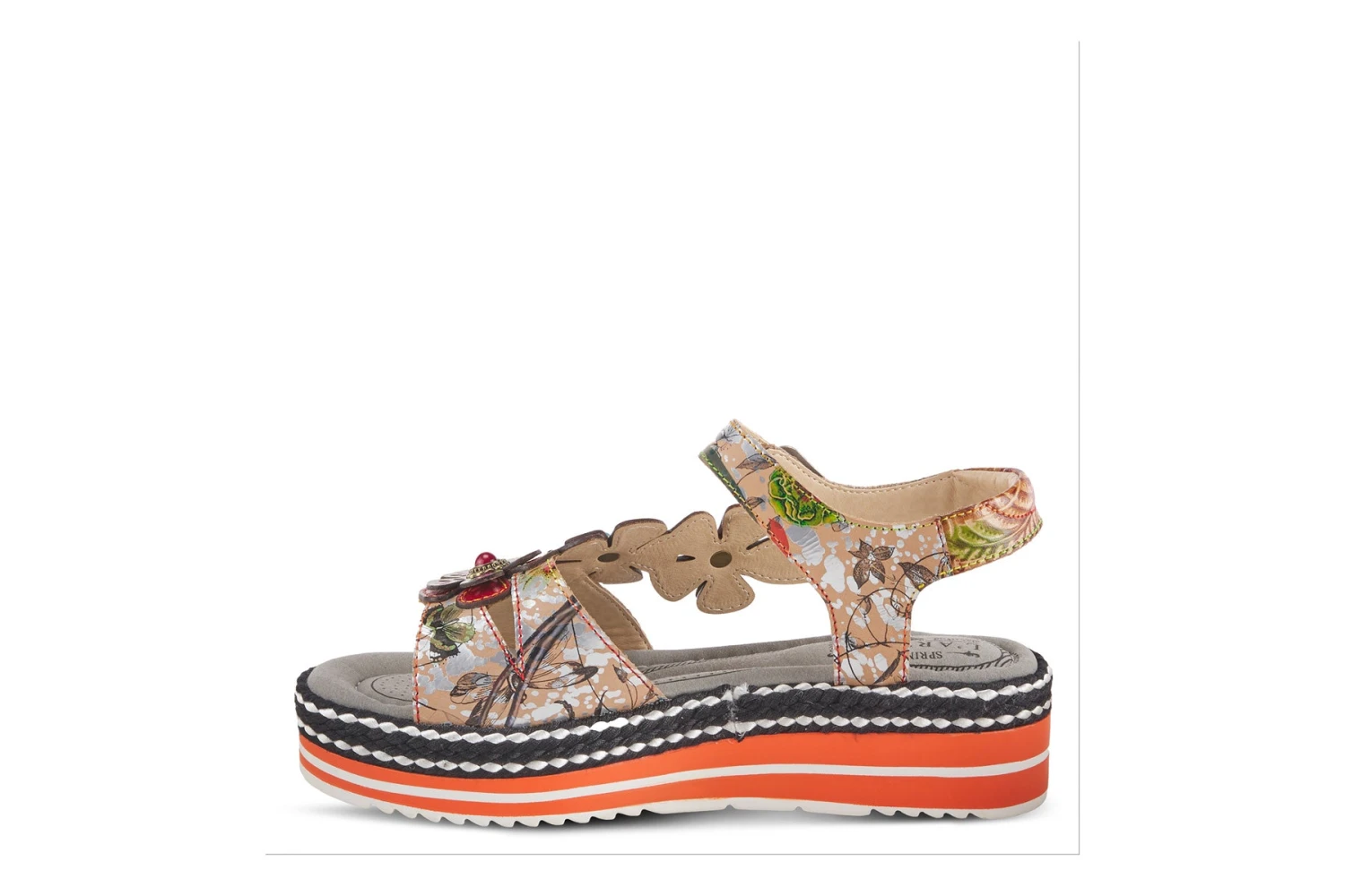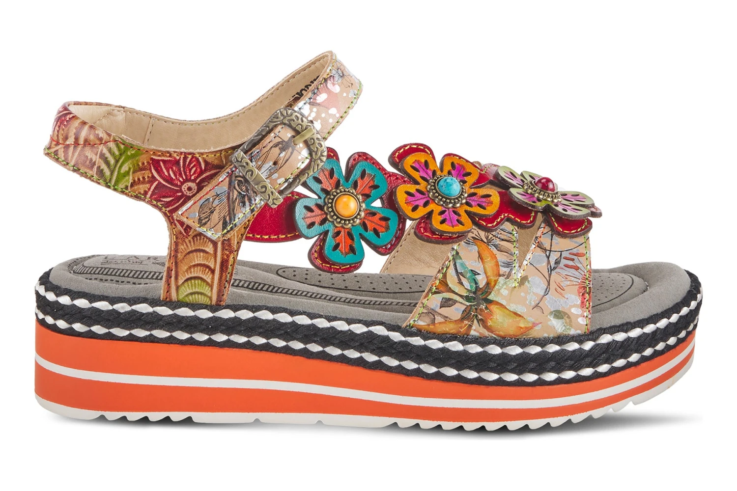 Super comfortable with a back strap and a trio of 3-dimensional flower petal embellishments combined with a printed floral upper. Features a hook and loop strap for ease.