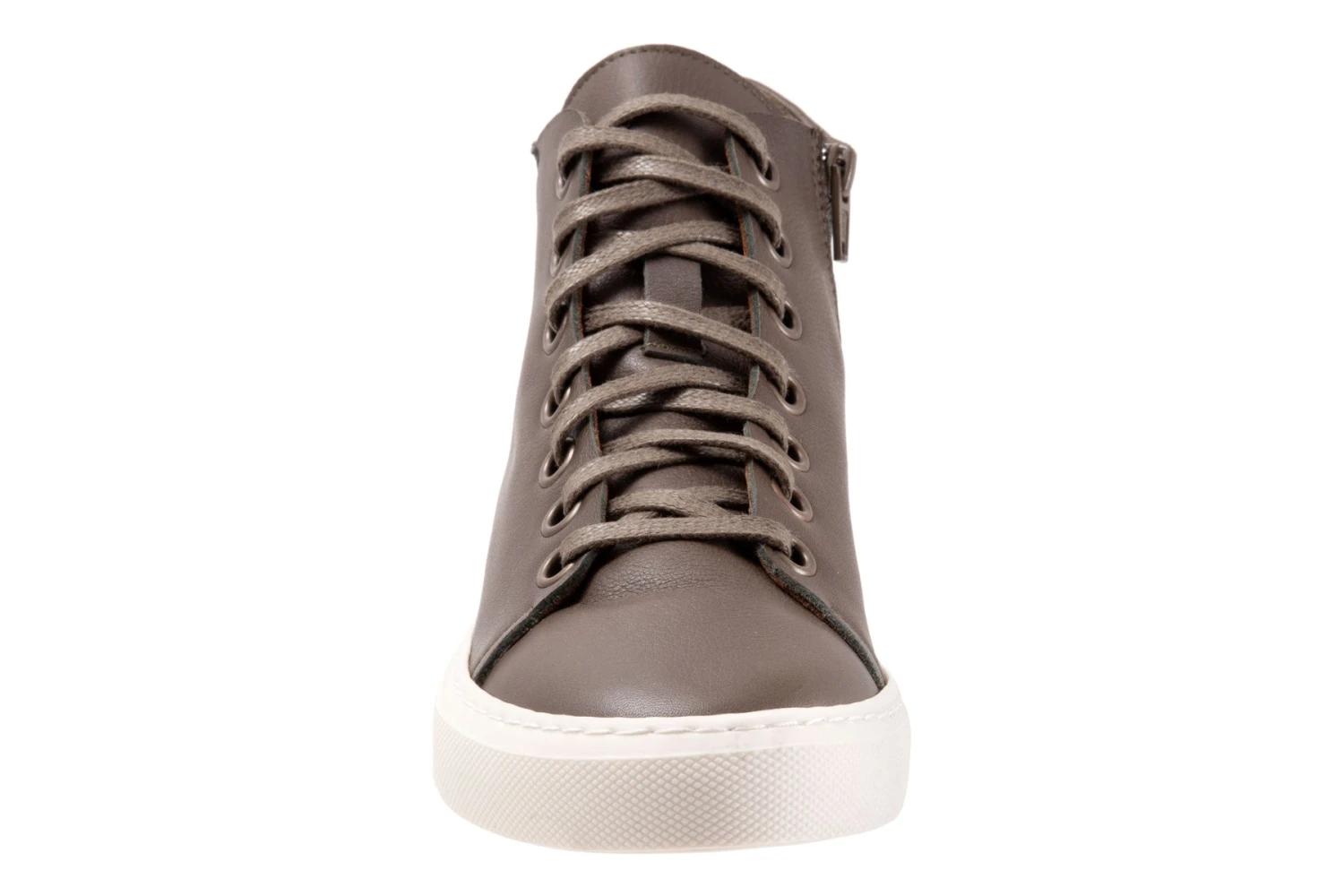 Color matching laces lend a fashionable slant to the Risky high-top sneaker with its easy on/off side zipper.