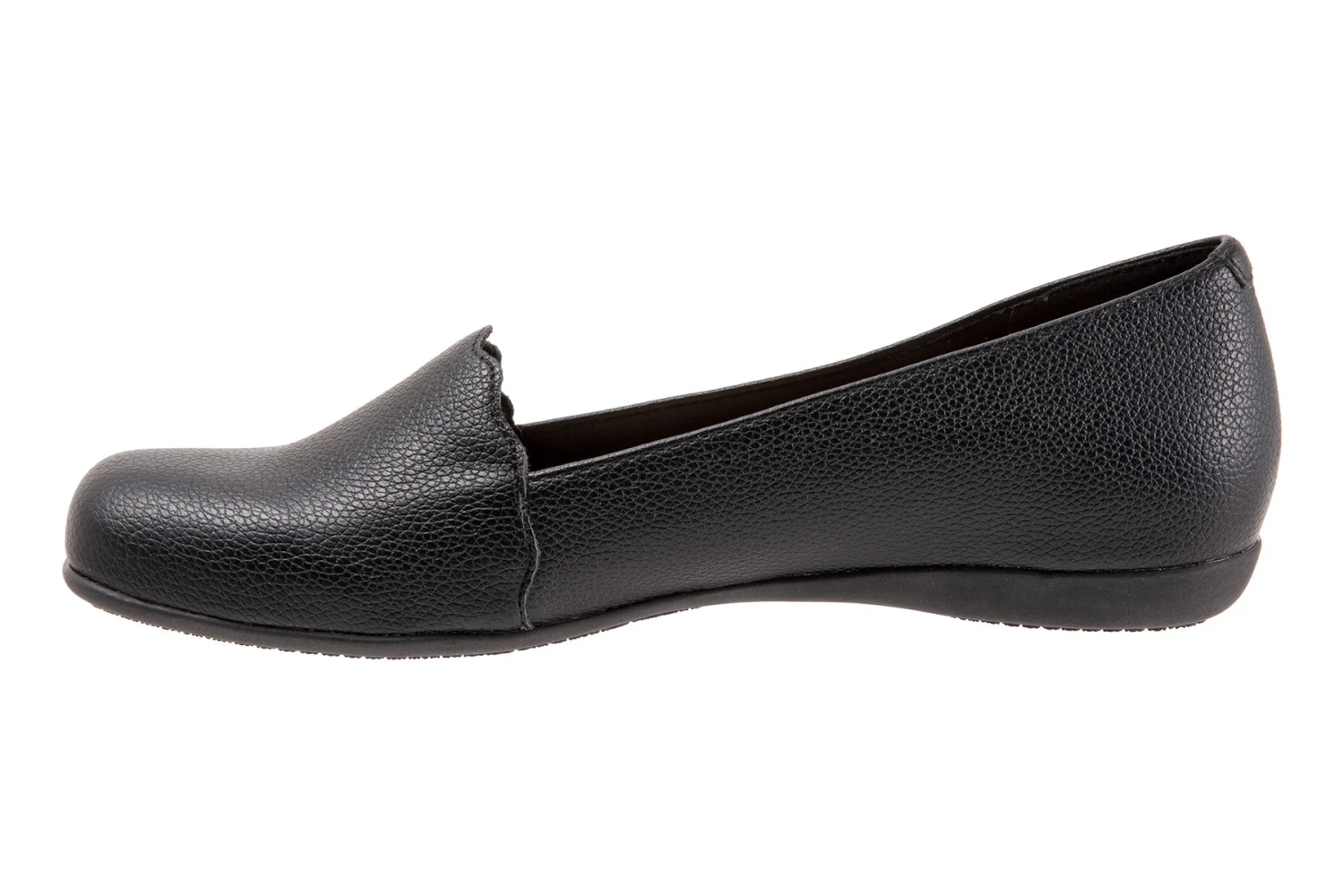 Scalloped edging gives the Sage loafer a cute feminine flare. The removable footbed is cushioned and has arch support. The long-wearing sole is a Trotters best seller.