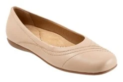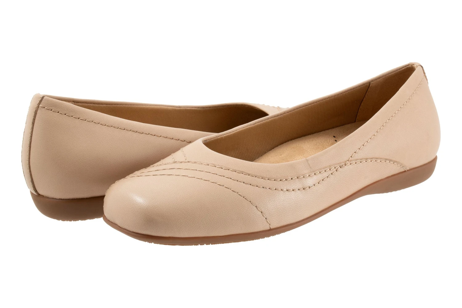 Wavy lines of stitching and overlapping leather give the Sasha flat a sense of whimsy. The removable footbed is cushioned and has arch support and the long-wearing sole is a Trotters best seller.