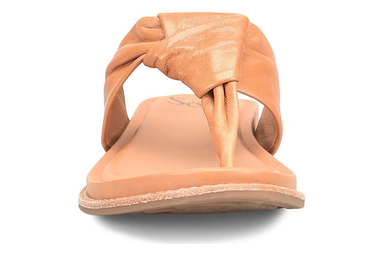 Sofft Essie is an elegant and comfy toe post sandal. Features include a knotted full-grain or Italian leather upper strap, raised foam footbed and TPR outsole. A soft leather lining, round toe design and stacked 1-inch heel makes these summer shoes ready for any occasion.