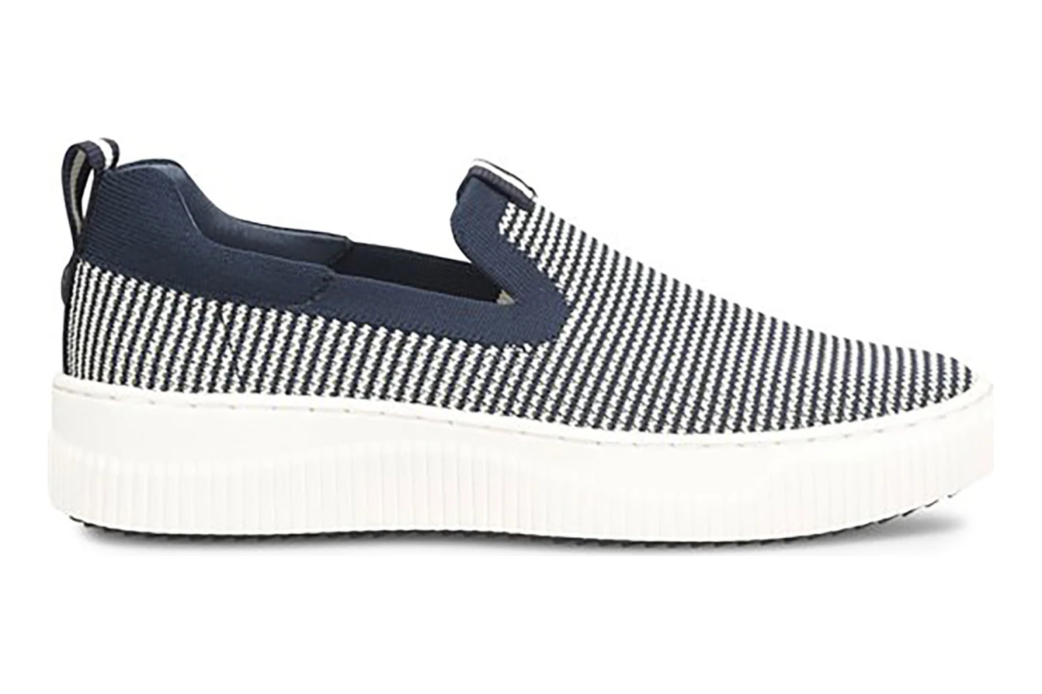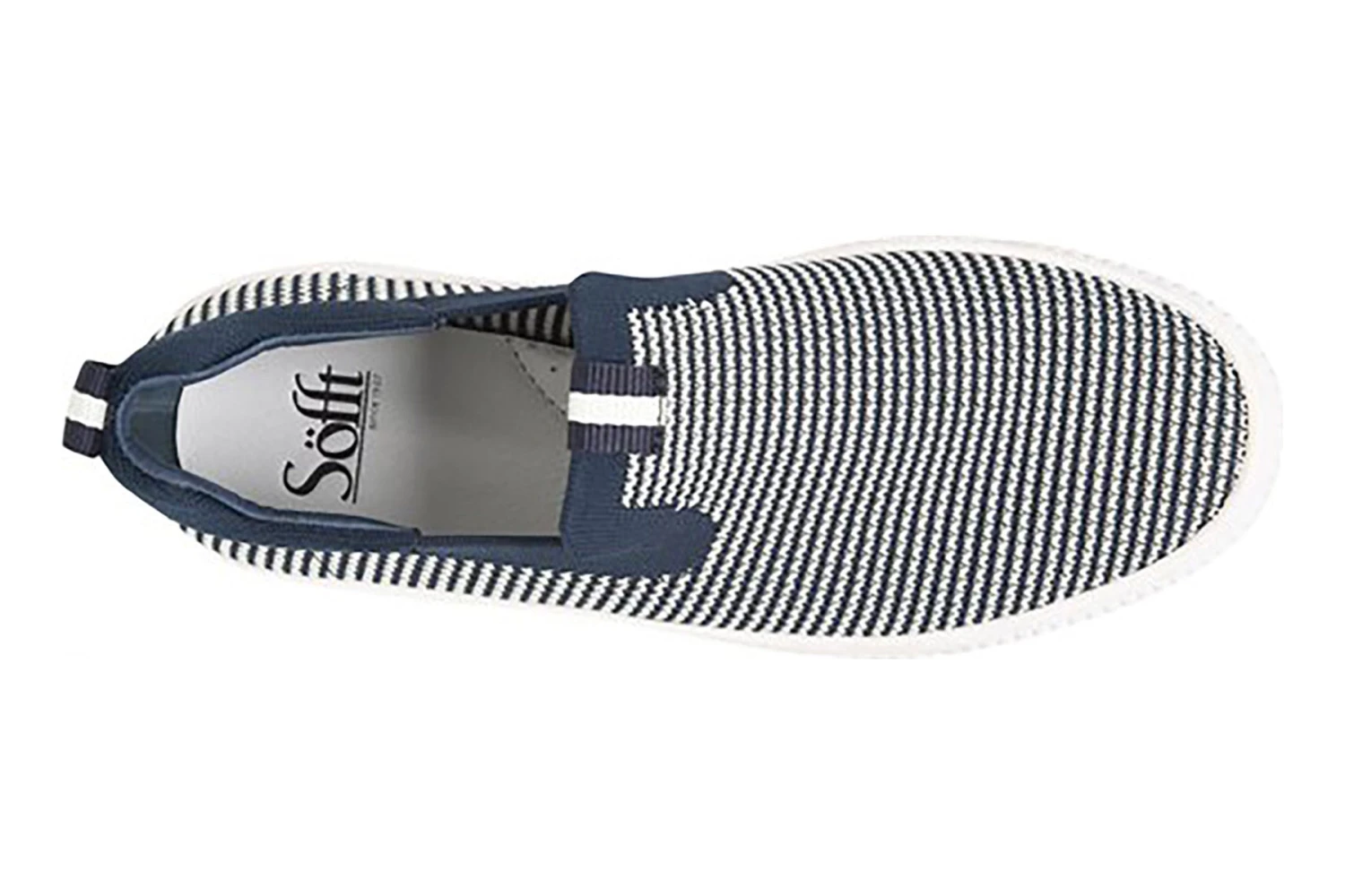 Sofft Frayda is a classic and comfortable slip-on sneaker. These modern and sporty shoes have recycled knit mesh uppers and a lightweight TPR outsole. A padded heel collar, back pull tab and cushioned footbed completes this timeless silhouette.