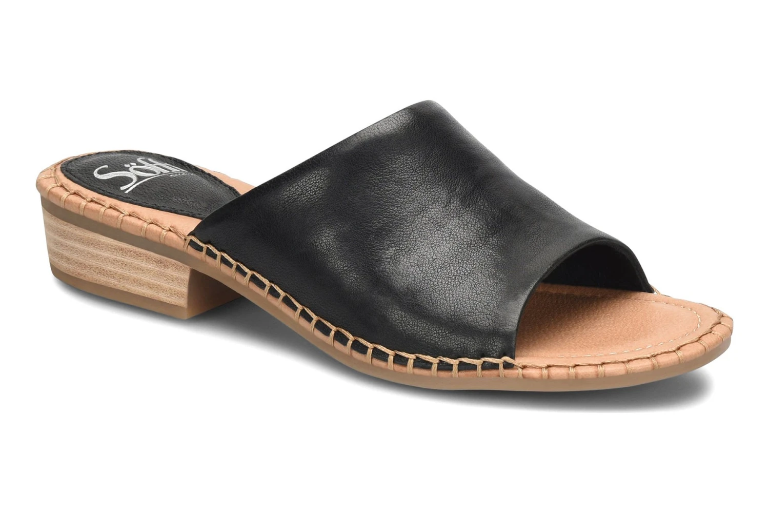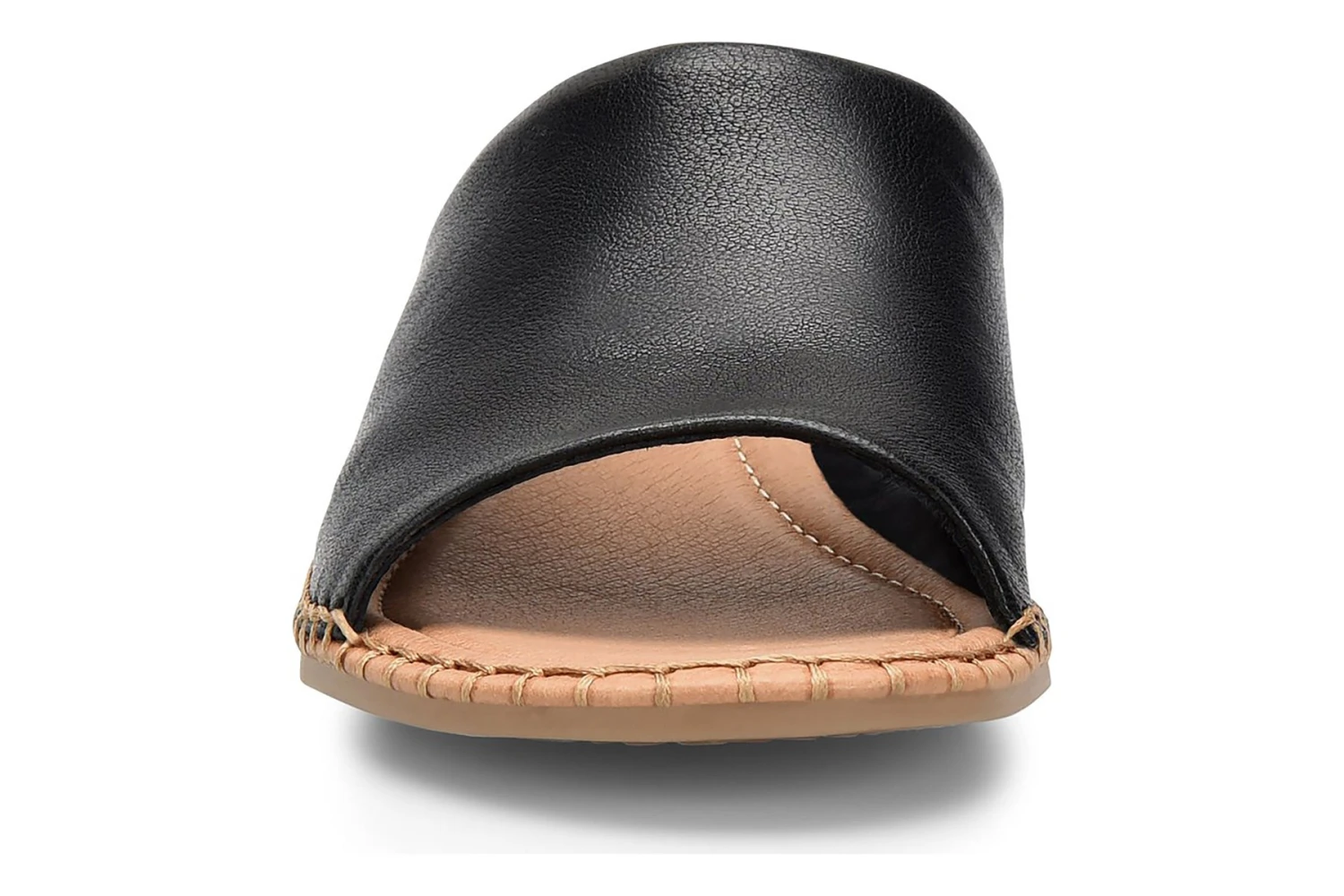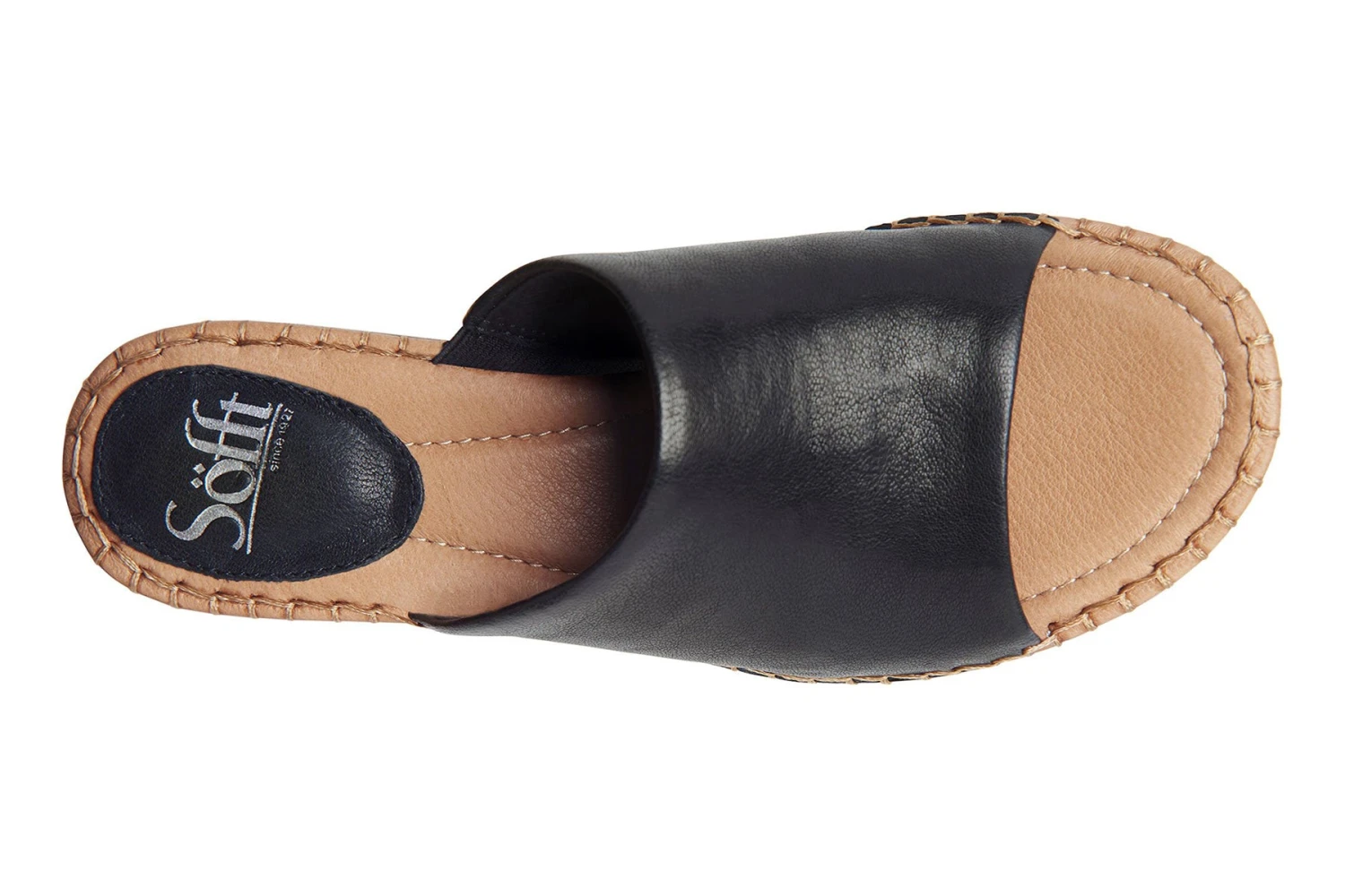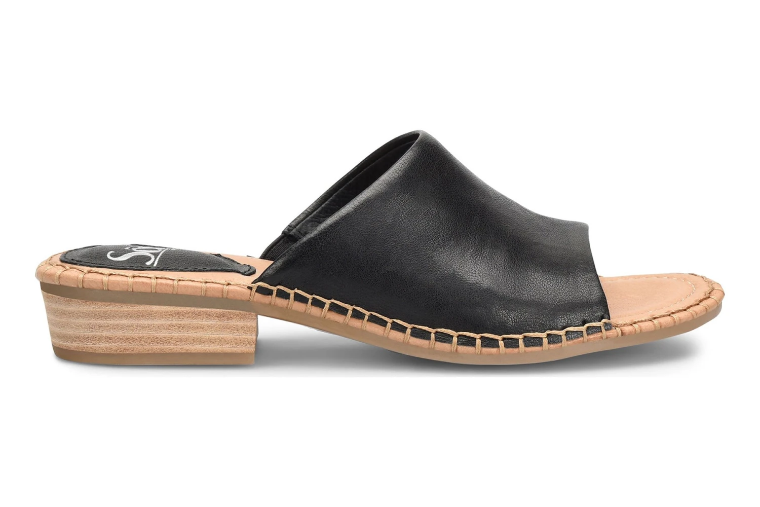 Sofft Nalanie is an elegant and comfortable slide sandal. These slip-ons have leather uppers, linings and insoles, cushioned footbed and flexible TPR outsole. Other features include blanket stitch detailing and a 1-inch stacked heel.