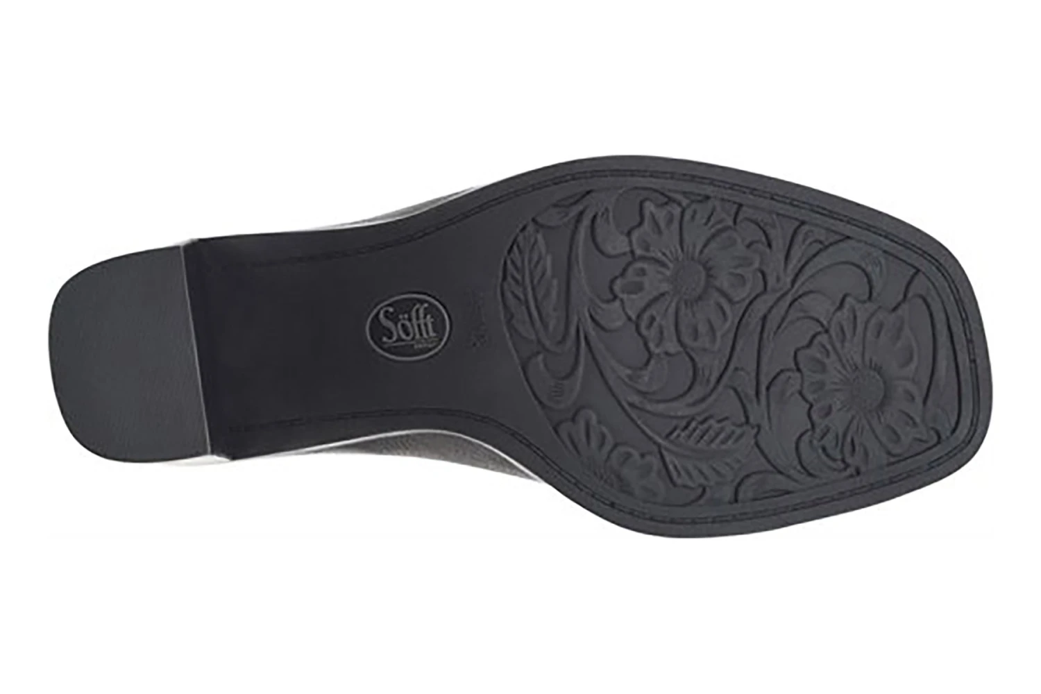 Sofft Safire is a luxurious and trendy women’s heel slide. Prominent features include Italian leather uppers, cushioned footbed and flexible TPR outsole. These high heels have stretch goring, leather lining and a 3 ¼ inch heel height.