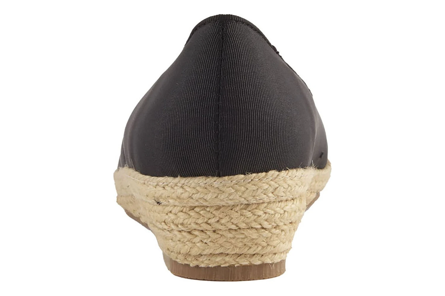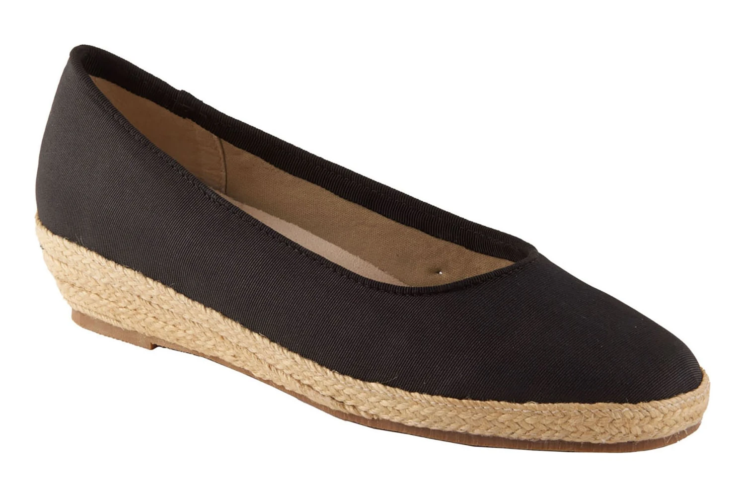 1″ rope-covered wedge espadrille, gross grain binding, foam padded footbed, skid-resistant rubber outsole.