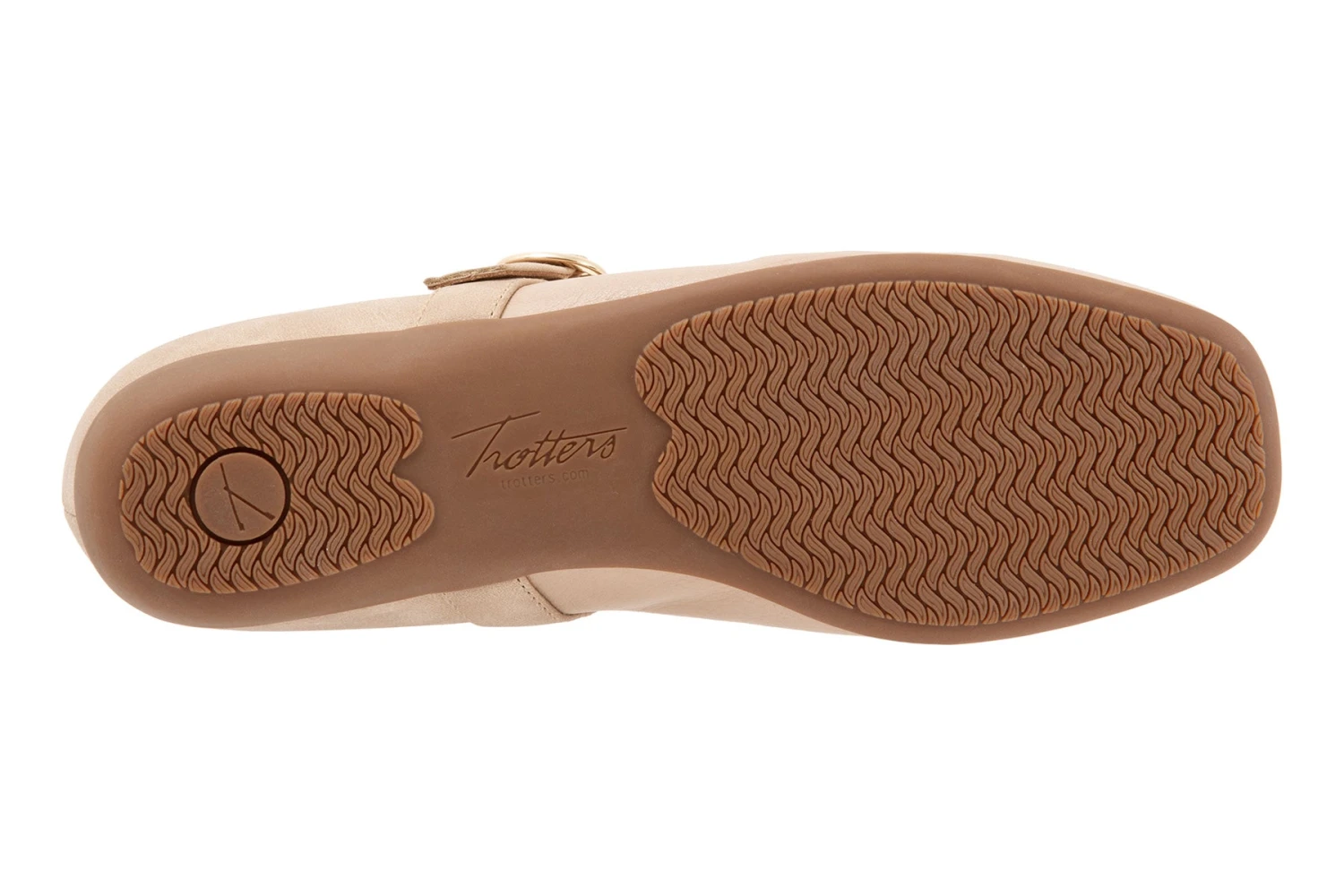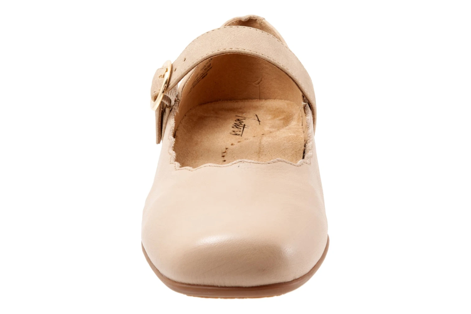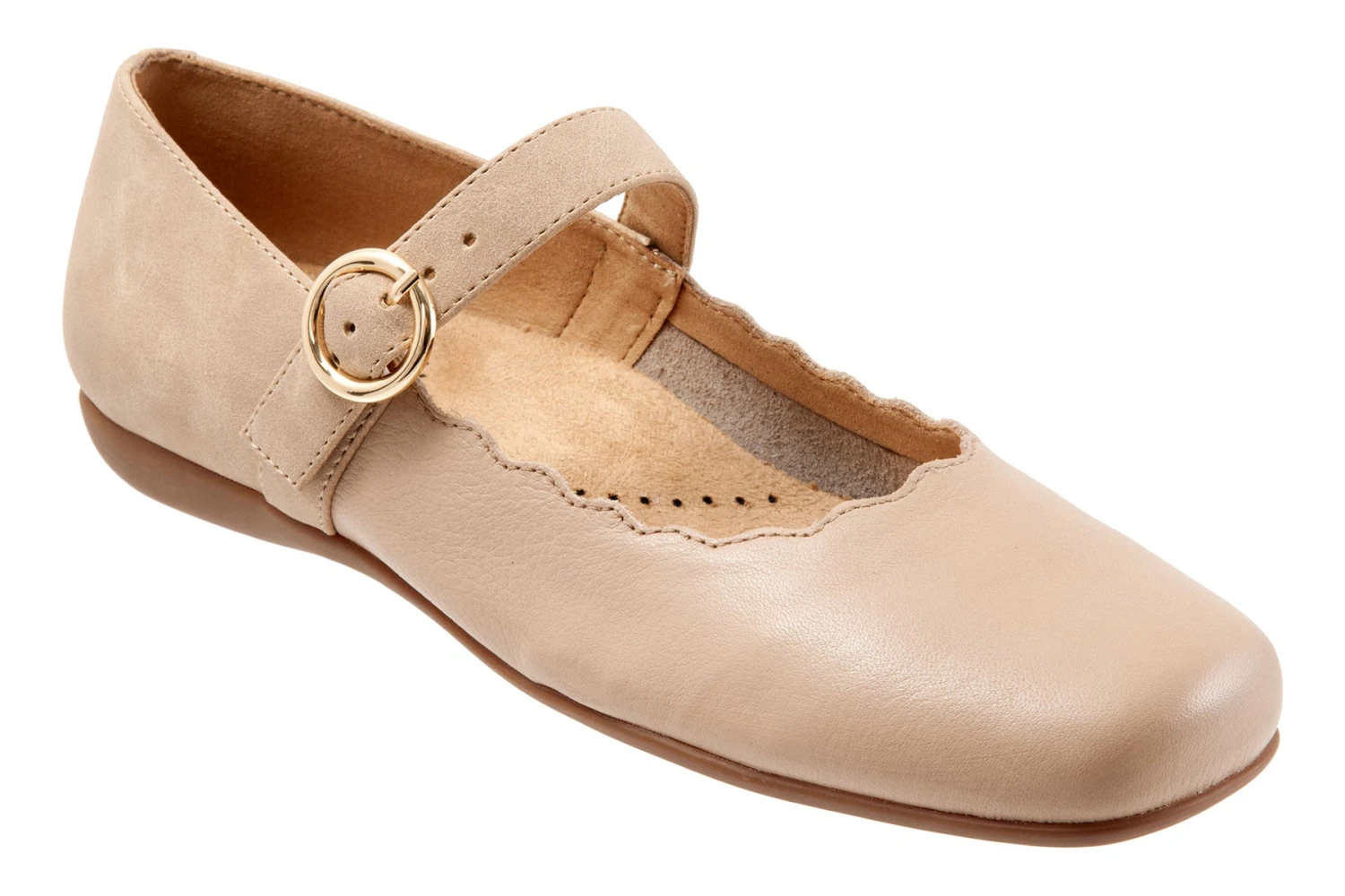 The Sugar flat sure is sweet with its stylish scalloped topline. The sure-fit Mary Jane makes it the perfect flat for walking. The removable footbed is cushioned and has arch support. The long-wearing sole is a Trotters best seller.