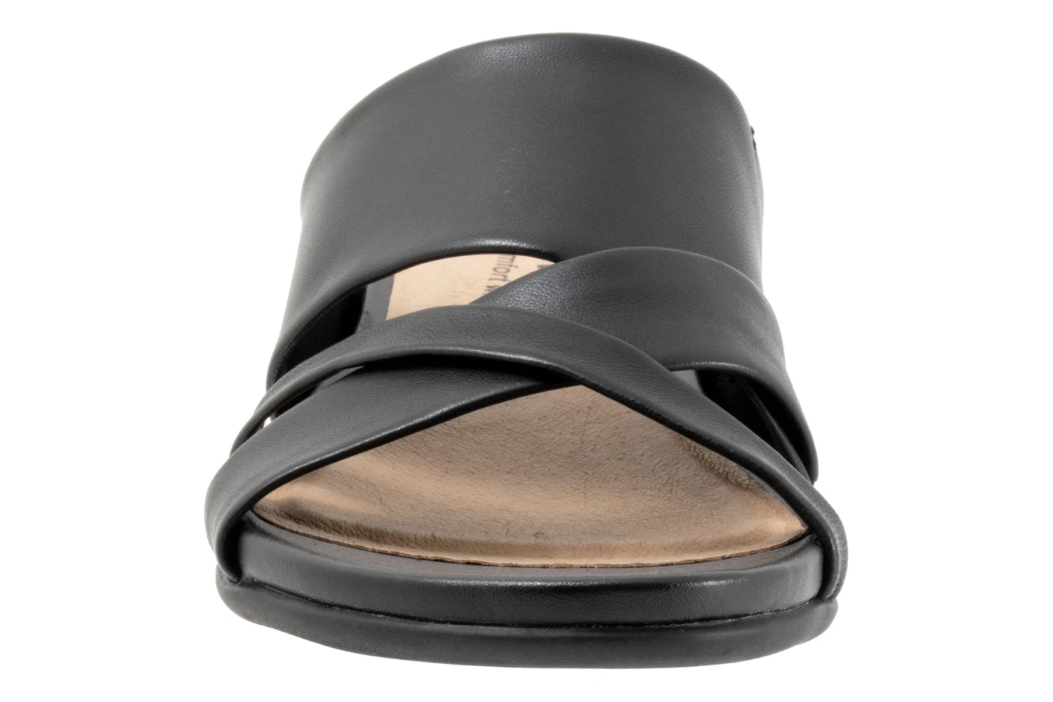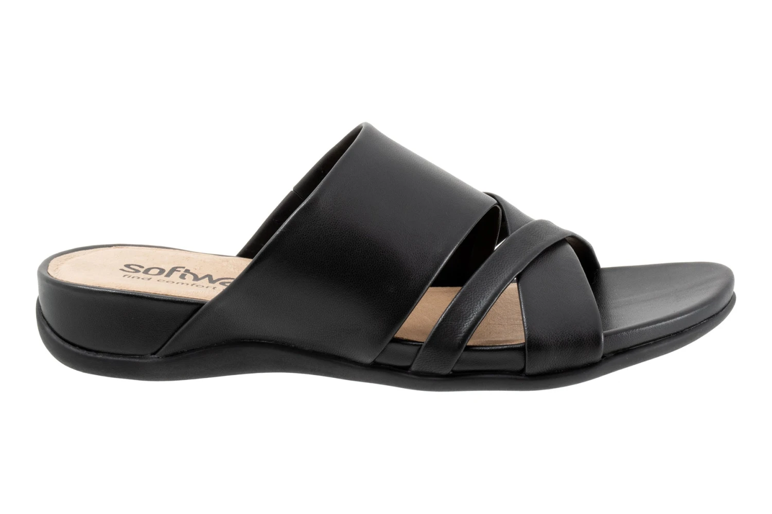 SoftWalk Taraz is a supportive and comfortable leather slide sandal. Crisscrossing vamp straps and a well-cushioned footbed provides long-lasting comfort. A leather upper and lining, along with a flexible and slip-resistant outsole, will have your feet happy and supported all day and night.