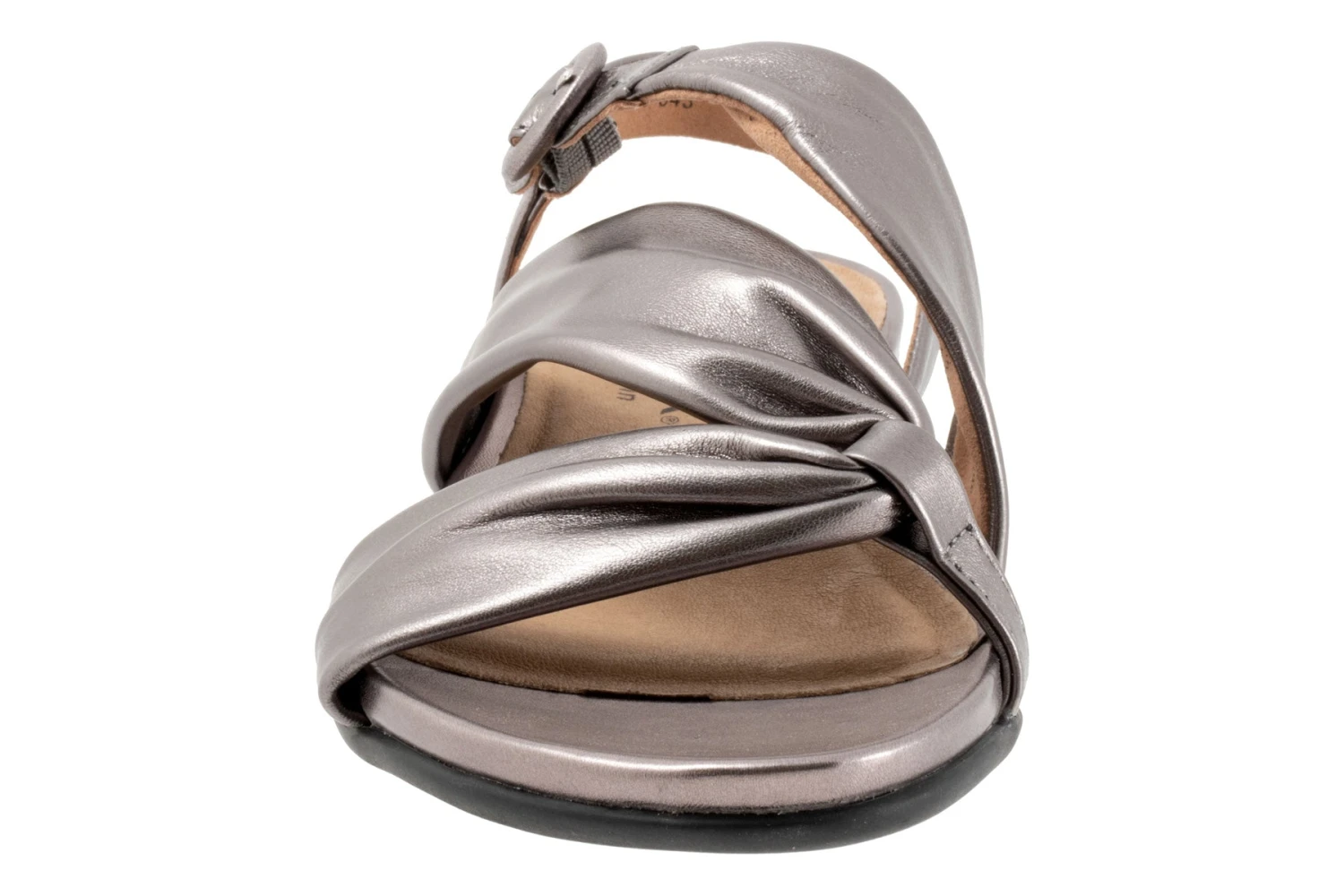Cute pull on sandals with a ruched side detail and a thin adjustable back strap.