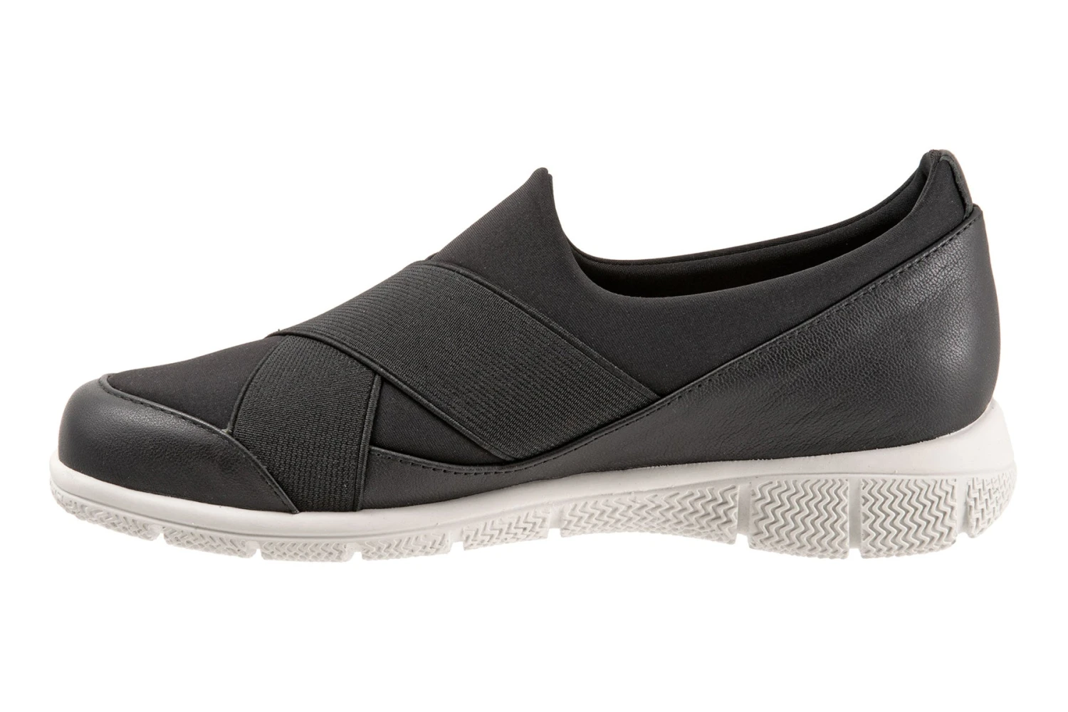 A slip-on sneaker with athletic-inspired lycra upper for flexible comfort is elevated by flattering crisscrossing bands for the ultimate sport-chic sneaker.